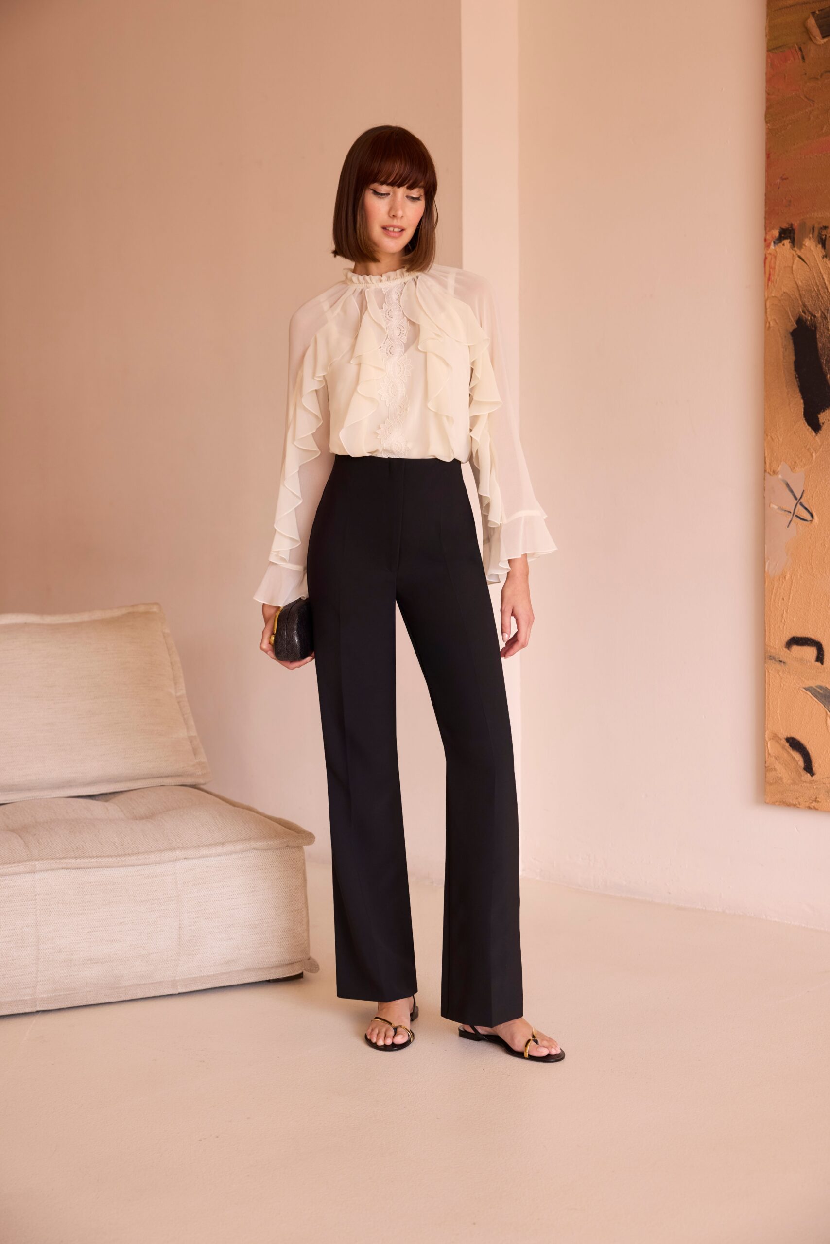 Esta espectacular blusa romántica de encaje es perfecta para ese evento especial, puedes combinarla con un pantalón negro y serás la invitada perfecta.