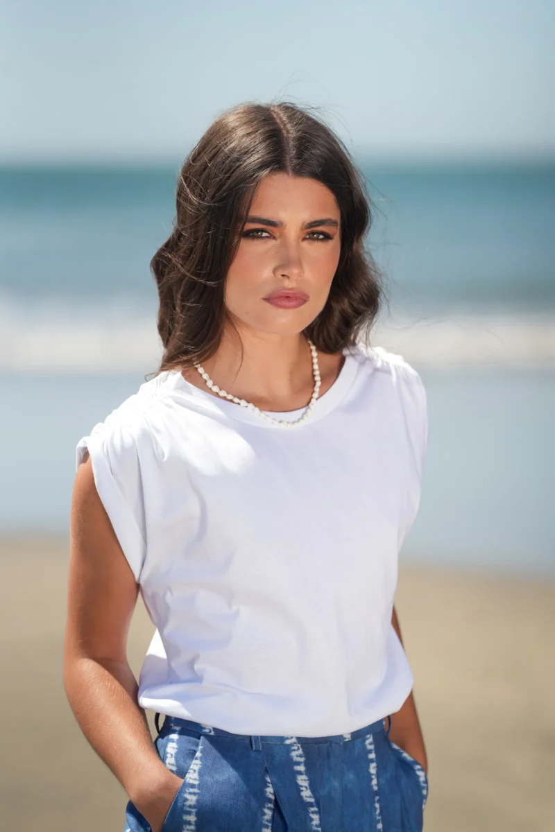 Camiseta de manga corta en color blanco de nuestra nueva firma GUIMANOS. Prendas exclusivas y con tejidos súper frescos para esta temporada de primavera/verano25.